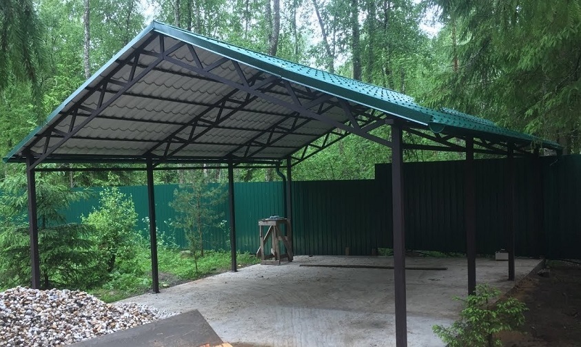 За день на даче изготовили арочный навес 5 на 7 с покрытием поликарбоната. Привезли уже готовые крашенные фермы и весь остальной материал. Все за собой убрали и увезли мусор. Молодцы!